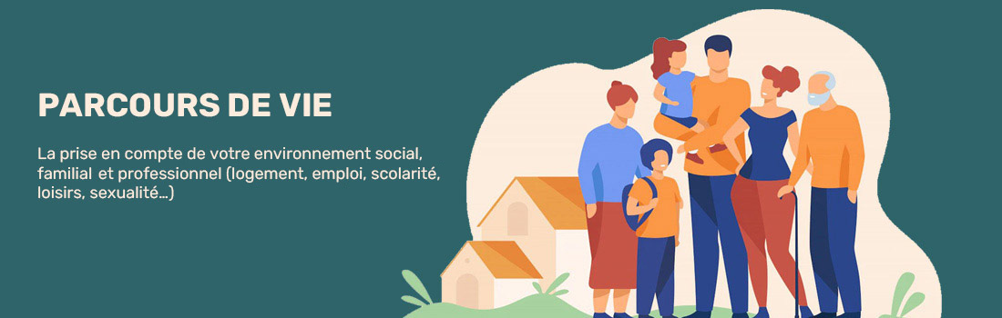 Il correspond au parcours de la personne dans son environnement de vie quotidienne : famille et entourage, scolarisation, prévention de la désinsertion professionnelle, réinsertion, logement…